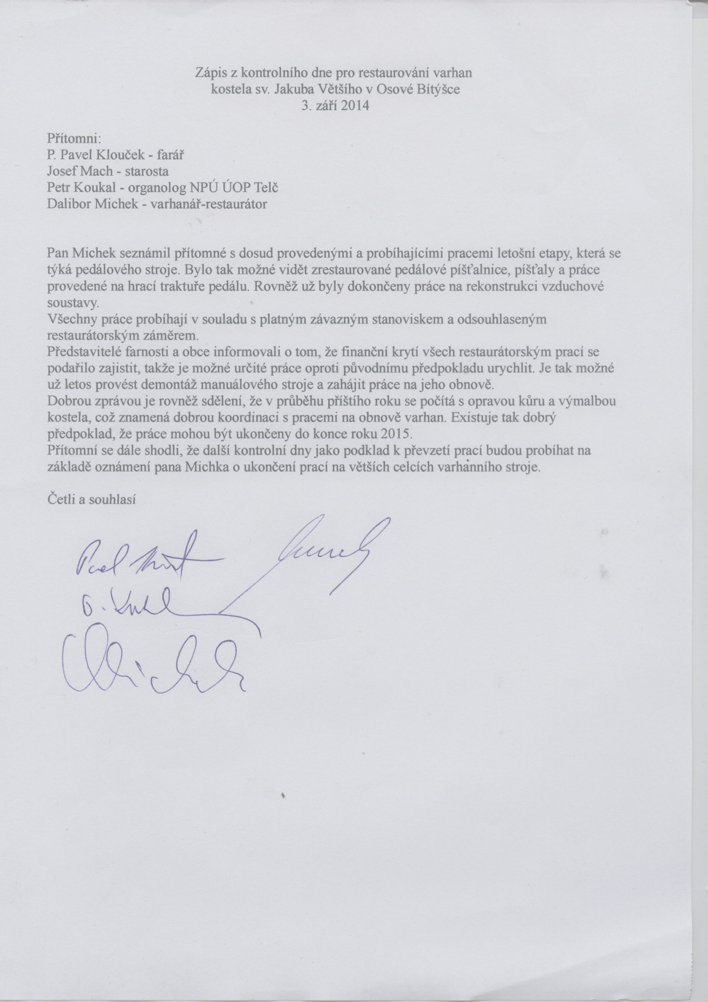 Zde je ke stažení dokument, který rozhodl, že varhany nebudou nové. Nástroj, který v kostele svatého Jakuba je, je třeba restaurovat. Dokument je datován 26. srpna 2013.